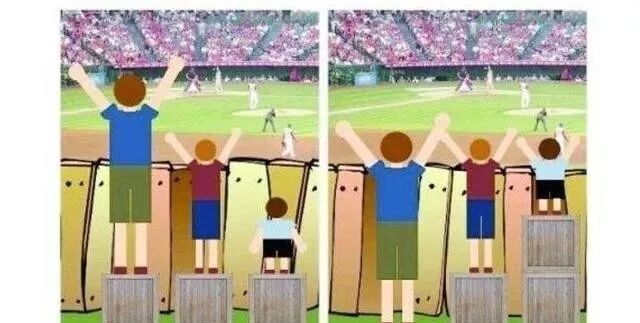 平等和公平总是被人们所混淆,比如左图中所展现的平等,右图展现的是公平。可是很多人在平等的情况下,明明未曾努力却还要求公平。并认为这是理所当然的。