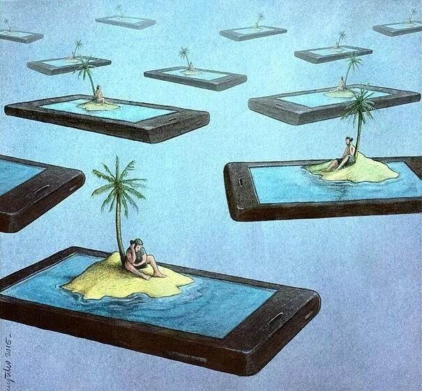 你知道《鲁滨逊漂流记》,又或者看过电影《荒岛余生》吗?当一个人被困于岛屿之后,他将失去真实的社交机会。然而,智能手机,快速的wifi网络似乎为每一个人都设置了一个荒岛。这让人们逐渐且自愿的减少甚至忘记了人与人之间的近距离交流。