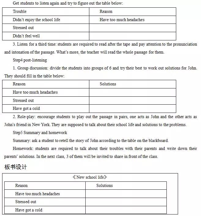 《New school life》主要教学过程及板书设计