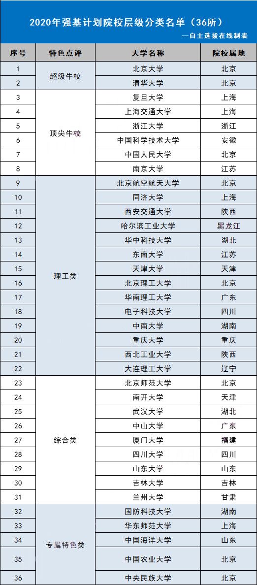 1月15日,教育部发布强基计划相关规定,2020年共有36所试点高校参与强基计划招生。那么,这36所院校有哪些特色的王牌专业?接下来考而优就为您详细解读,供考生家长及中学老师参考。